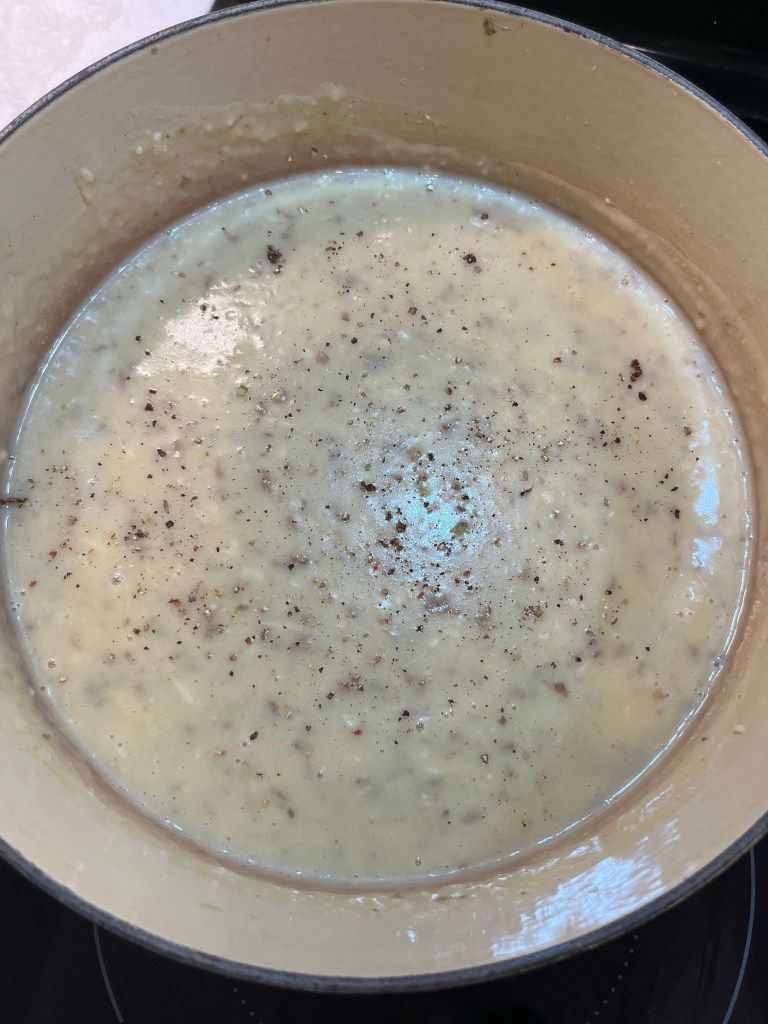 Once the potatoes have roasted, pulled them out of the oven and drop into a heavy bottom pot. Add the butter, mustard, milk and chicken broth. Bring to a soft boil then turn off the heat. Using an immersion blender, blend the ingredients together until smooth. Feel free to leave chunky if you like it that way! Totally up to you! Mix in the cheese and when it melts you’re ready to dig in! This is perfect with crusty bread, soft pretzels and topped with scallions, bacon, ham, the works! It’s super versatile and very delicious.