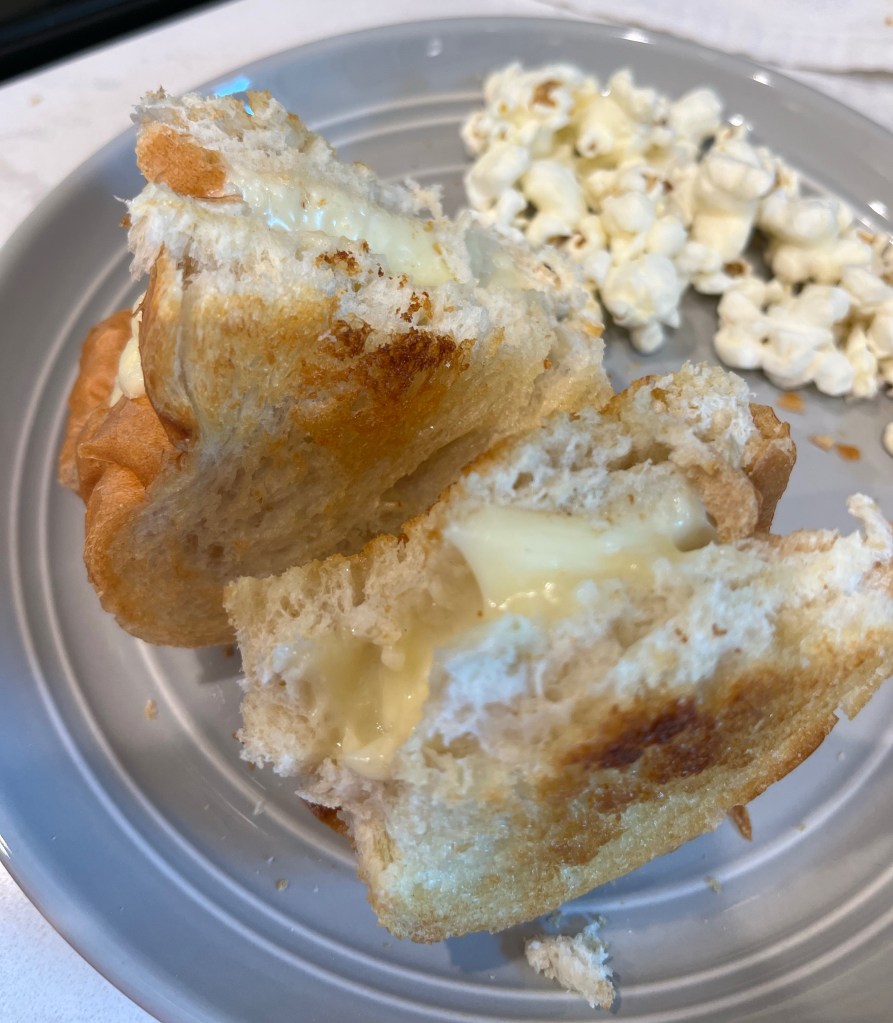 It’s taken me years to figure out the right combo of bread v cheese, but I’ve finally nailed it. Cooper Sharp is the cheese – its hard to find in the DC area, but some of the grocery store deli-counters carry it. This is technically American cheese, but its super creamy, a little nutty and absolutely the best melting cheese I’ve found anywhere. This is my ride-or-die for making any kind of grilled cheese. But it’s key to this one. The other must-have factor is the bread – it needs to be a thick, fluffy French or Italian bread from the bakery. The supermarket bakery is where I found mine.