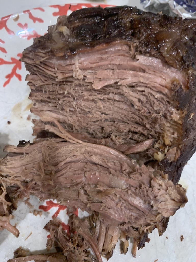 When the roast is done, the meat should be fall apart tender. Set on plate, and bring the liquid to a boil. Reduce by half and then spoon over the roast. Serve with mashed potatoes, a salad, crusty bread – sky’s the limit!