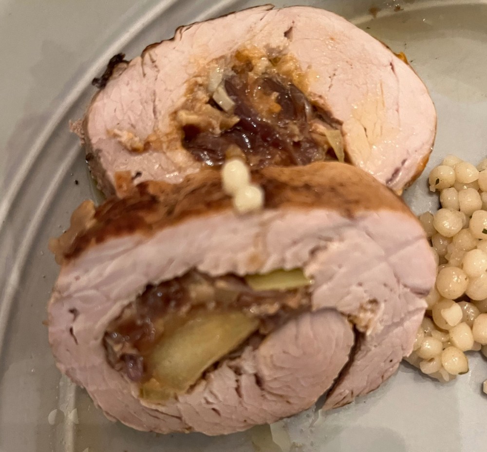 Caramelized onions, apples and cheddar cheese unite to create a delicious and homey filling for a lean, and tender cut of pork. This is one of those recipes that looks like it takes a seasoned kitchen chef, but is really super simple and easy. The hardest part is tying the string!